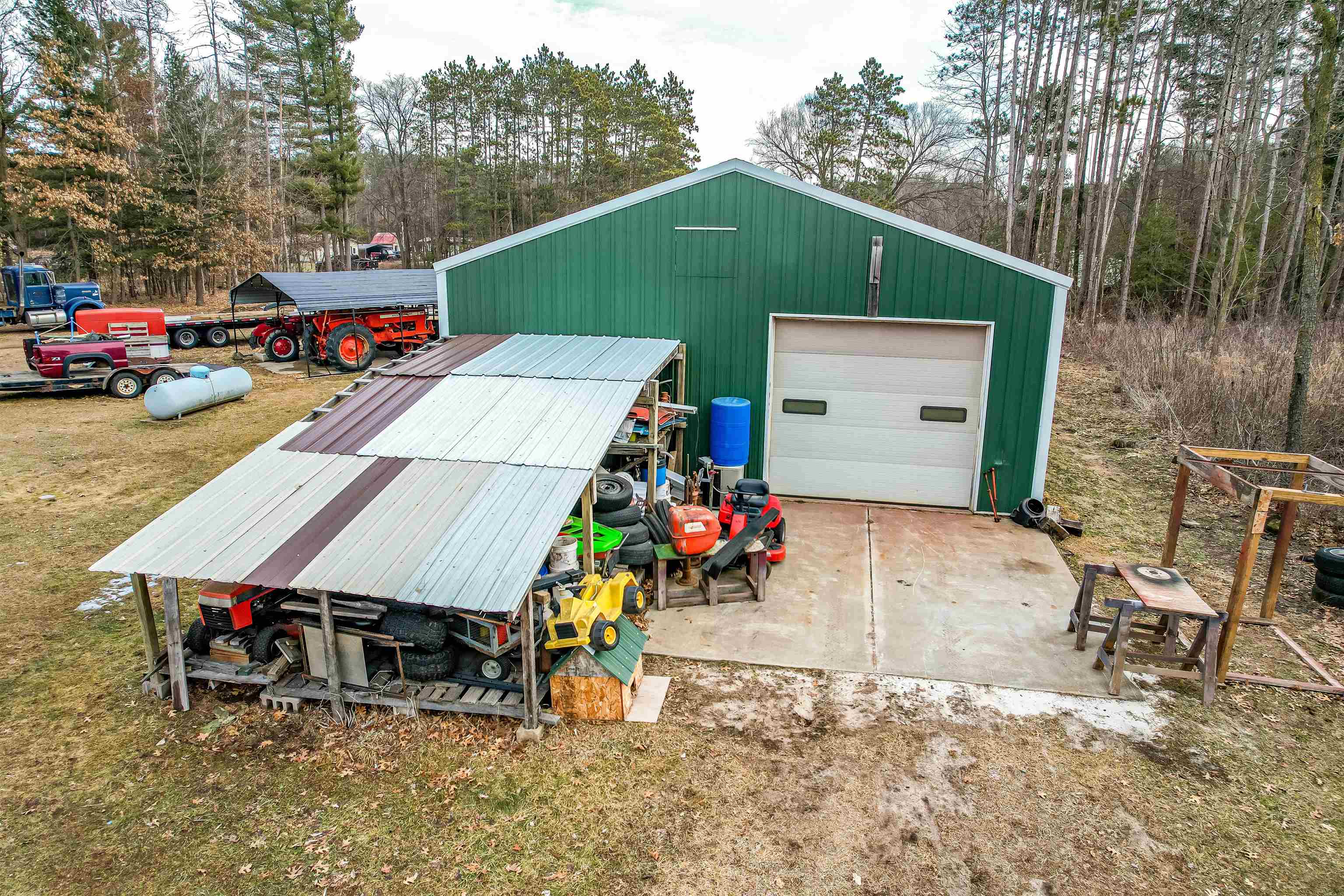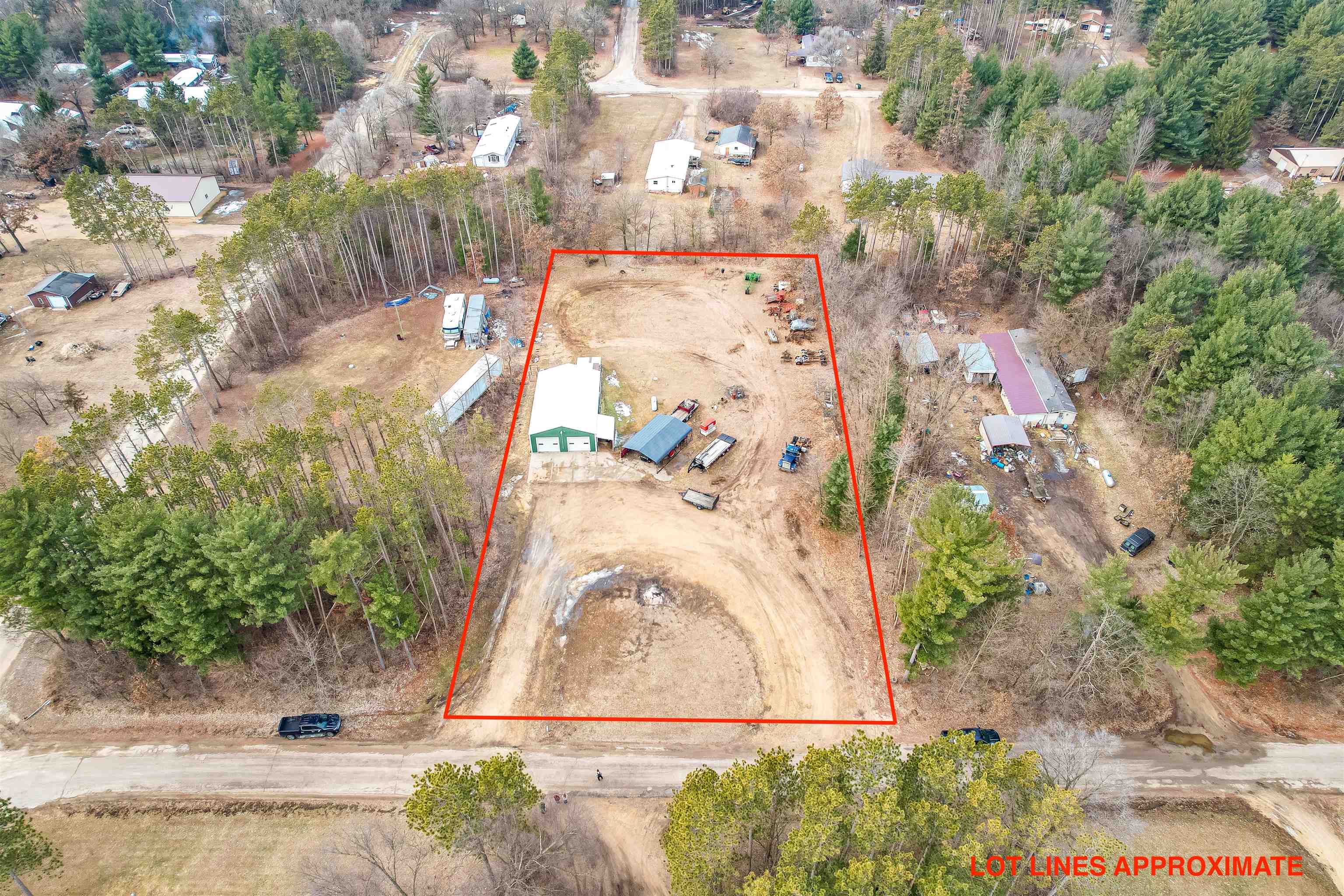 Over 1 acre of flat, usable ground with room for all the toys! This unique property is currently zoned residential and previously had a home, offering the potential to build again. Features include a well-insulated 30x50 heated shop with concrete floors, floor drains, 110/220 electric, and three 10’ powered overhead doors. 3Br conventional septic system and four sand point wells (one services the shop, operability of the others is unknown). New carport on concrete slab adds extra covered storage.
