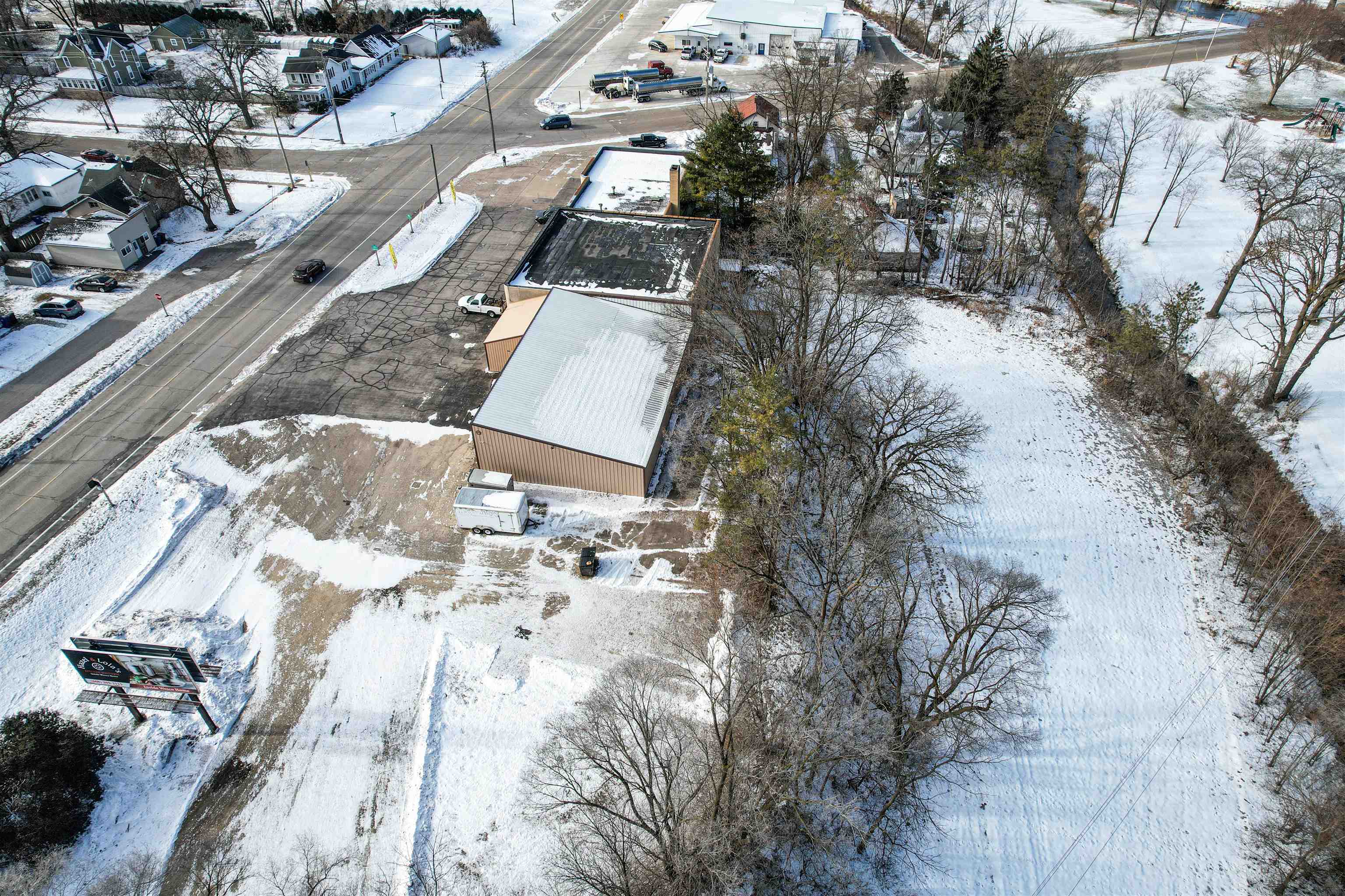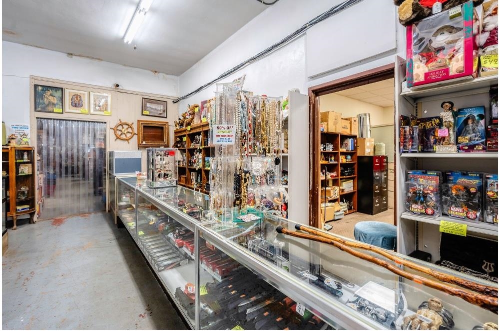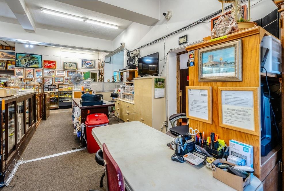 Longstanding commercial building with deep community roots; construction began in 1939 and completed in 1940. Situated on 1.93 acres with high traffic and visibility this versatile property offers endless possibilities with vision and creativity. Currently an antique shop, potential uses include retail, car wash, repair or trade shop, banquet/event space, self-storage, apartments, and more—buyer to verify zoning and intended use. Features 32 security cameras, scenic rear views with gravel drive access, outdoor and indoor wood stoves, four furnaces, one A/C unit, three bathrooms, drive-in lower level, large main-level garage doors, and ample blacktop/concrete parking. Call today to schedule your private tour!